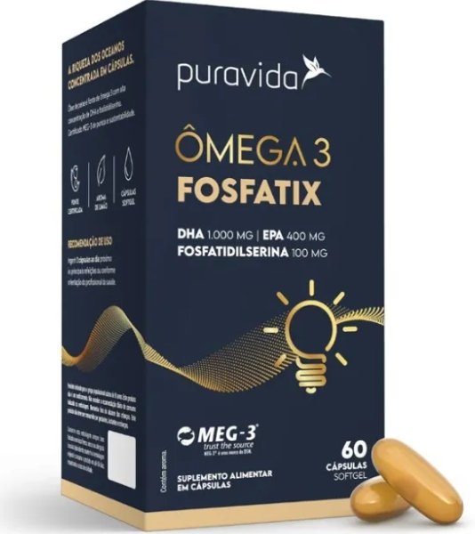 O Puravida Ômega 3 Fosfatix 60 Cápsulas é um suplemento alimentar avançado que combina ácidos graxos ômega‑3 (EPA e DHA) de alta concentração com fosfatidilserina, oferecendo uma fórmula completa para apoiar saúde cardiovascular, função cerebral e bem‑estar geral de forma eficaz e natural.