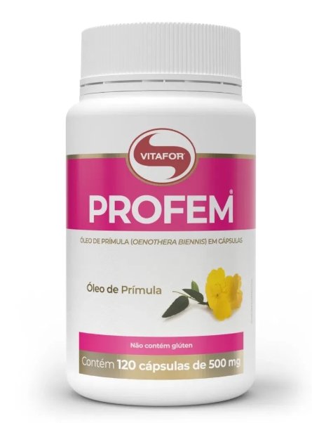 O Profem Cápsulas Vitafor é um suplemento à base de óleo de prímula, rico em ácido gama‑linolênico (GLA), um tipo de ácido graxo essencial da série ômega‑6 que pode contribuir para o equilíbrio hormonal feminino, ajudar a aliviar sintomas associados à tensão pré‑menstrual (TPM) e desconfortos da menopausa, favorecer a saúde da pele, unhas e cabelos, além de auxiliar na manutenção saudável dos níveis de colesterol, oferecendo um suporte natural e prático para o bem‑estar físico e emocional ao longo dos ciclos da vida da mulher.